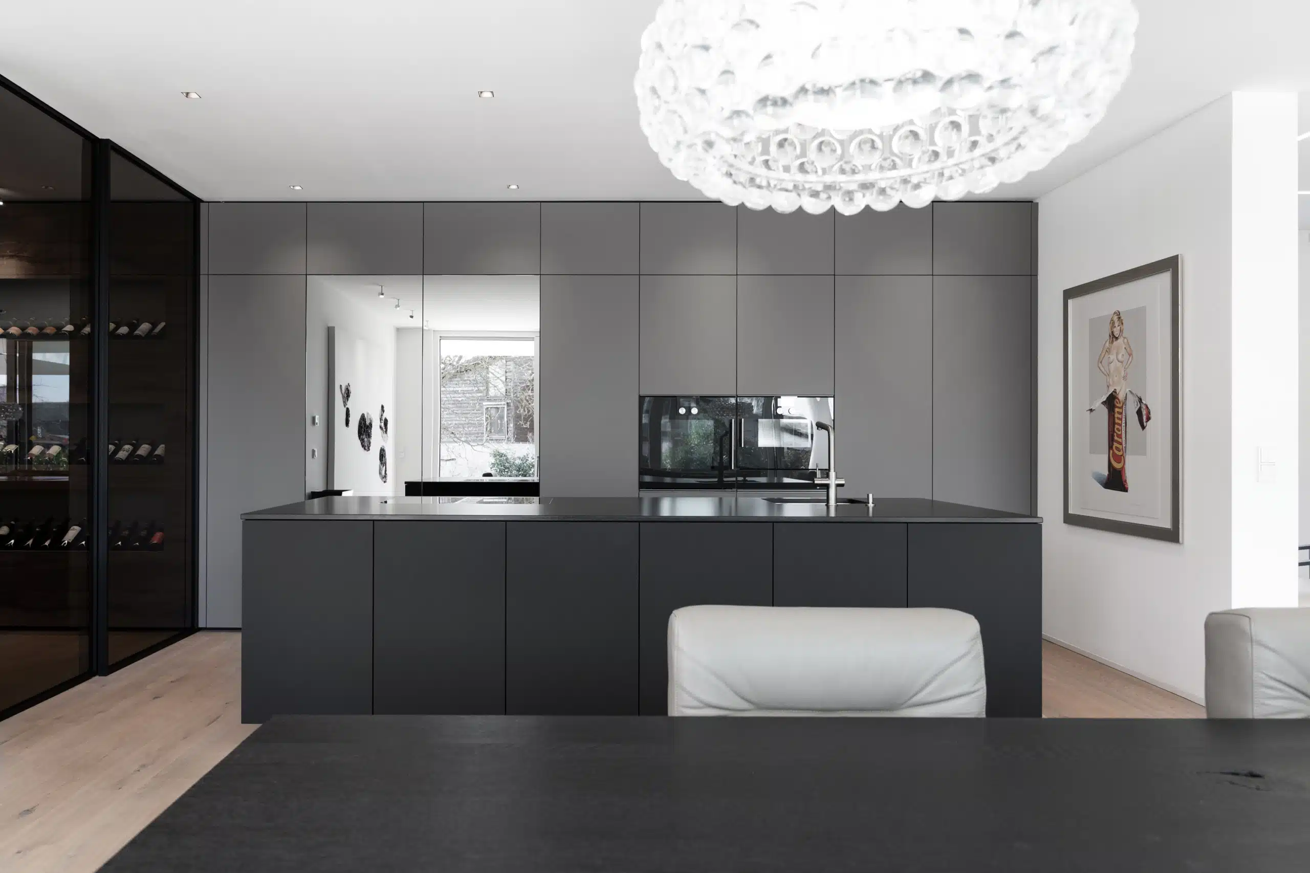 Entscheidend ist das richtige Verhältnis zwischen Platz und Raum. Notwendiges, das heißt Funktionelles, soll in einer Designküche, aber auch in anderen Räumen, gerade den Platz einnehmen, den es braucht, um seinen Zweck, seine Aufgaben erfüllen zu können. Durch Reduktion, Schlichtheit, Geradlinigkeit und eine fixe Position tritt Notwendiges in den Hintergrund, ohne dass alltägliche Abläufe darunter leiden – im Gegenteil! Klare Strukturen lassen Räume mit einer gewissen Großzügigkeit entstehen, die für das Besondere frei bleiben.
