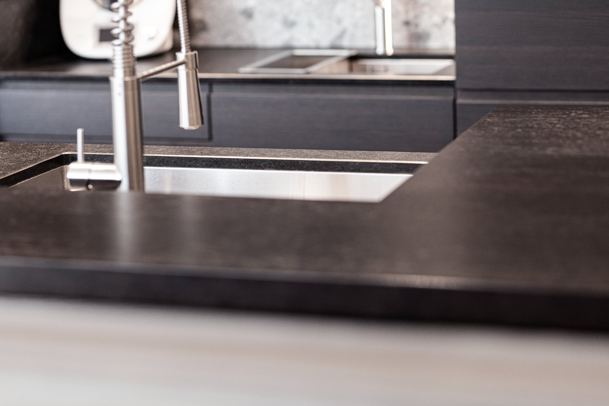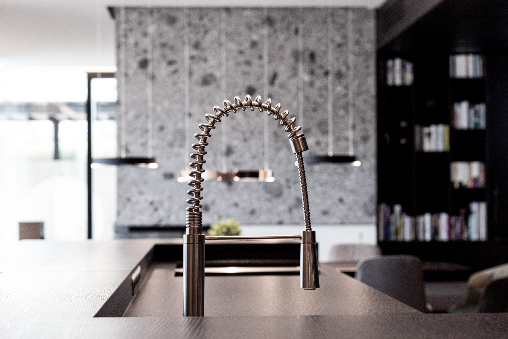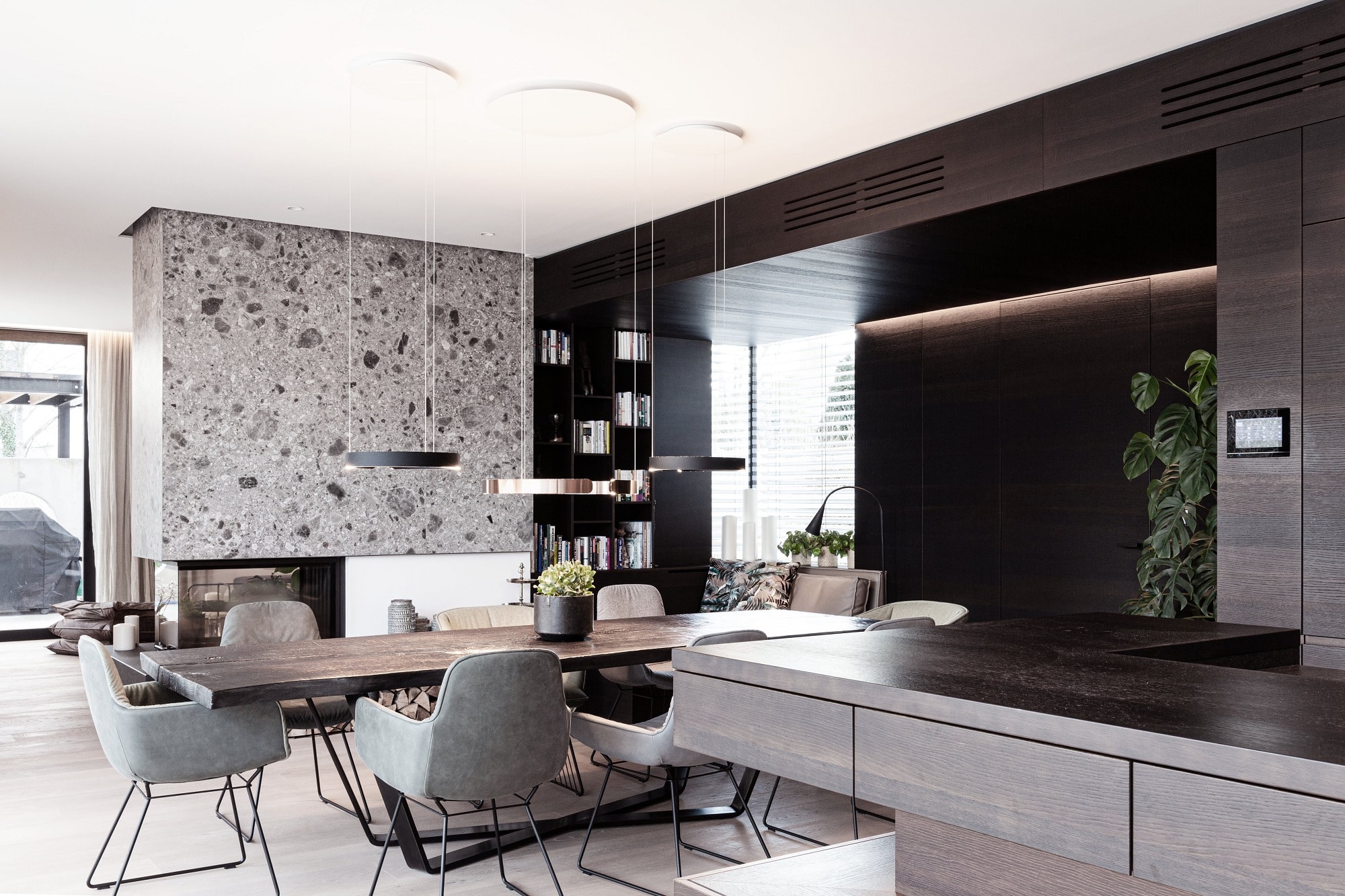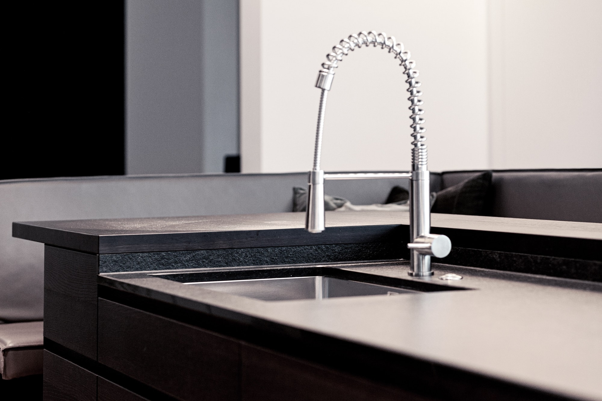 Edle Materialien und hochwertige Geräte runden diese eindrucksvolle Designküche ab.