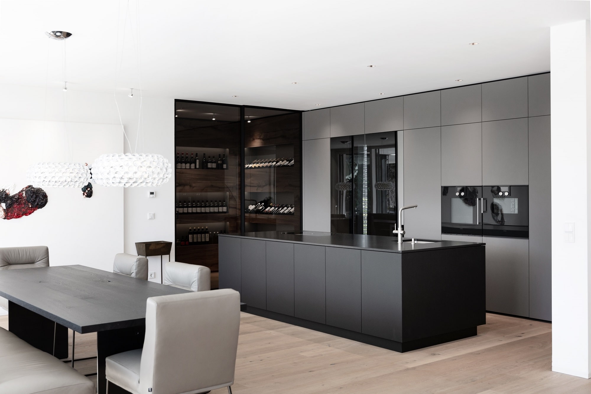Die offene Küche ist nicht nur das Herzstück des Hauses, sondern auch die Visitenkarte der Bewohner. Umso wichtiger ist es, ein besonderes Augenmerk auf ihre Planung zu legen. Offene Küchenarchitektur ist ein Zugang, der nahezu grenzenlose Möglichkeiten bietet. Jedes unserer Projekte ist einzigartig, da wir bewusst auf vorgefertigte Küchenmarken und Küchenlinien verzichten. Somit sind außergewöhnliche Lösungen möglich und jeder bekommt eine exklusive Designküche. Als Interior Designer und Spezialist für herausragende Innenarchitektur in Linz durften wir dieses Projekt umsetzen.