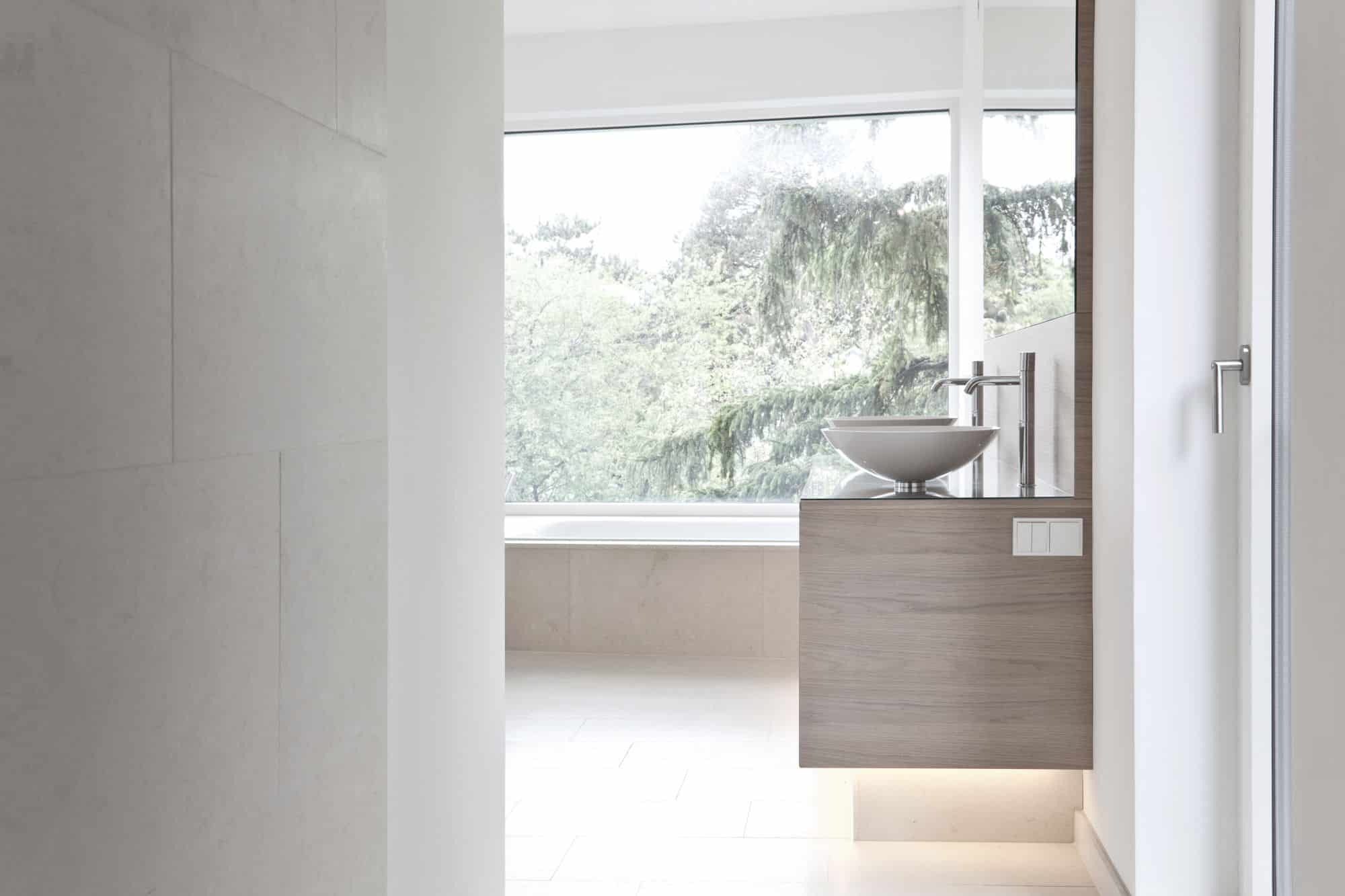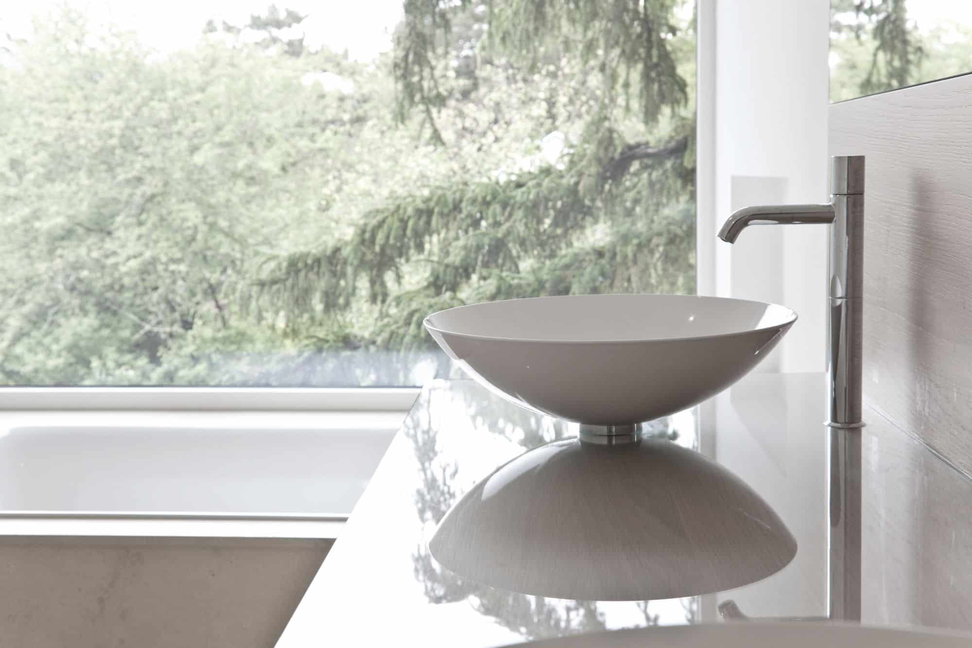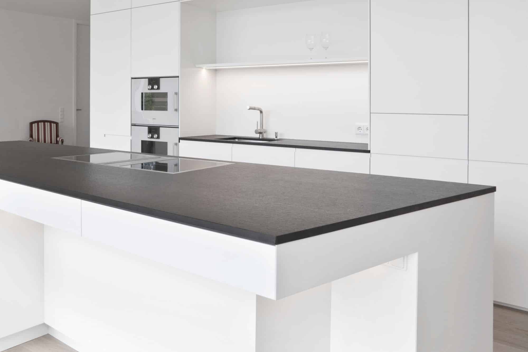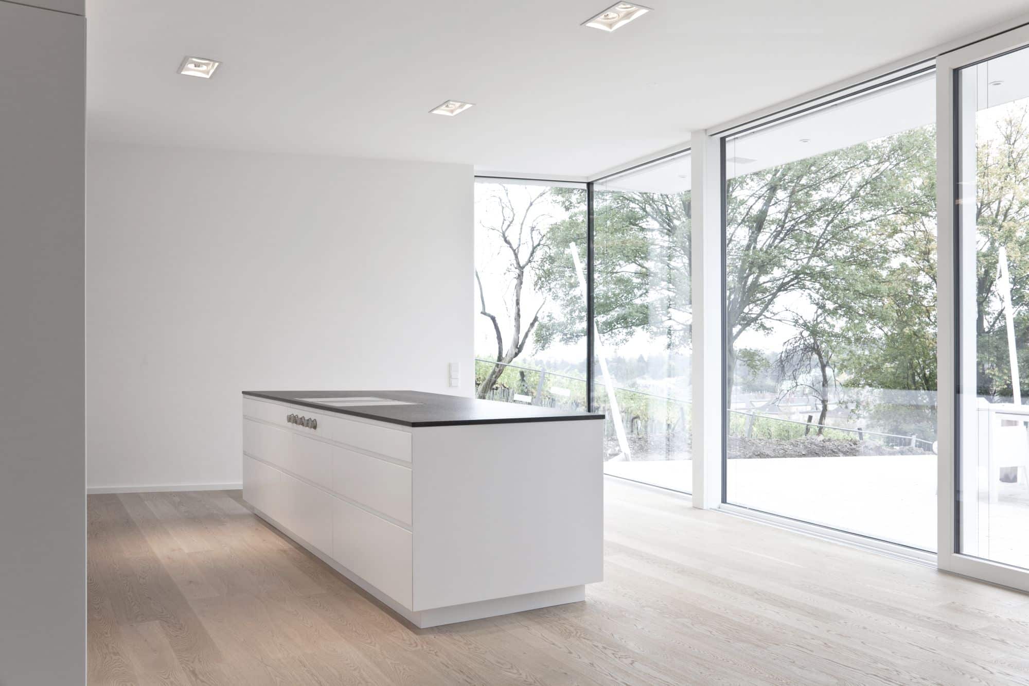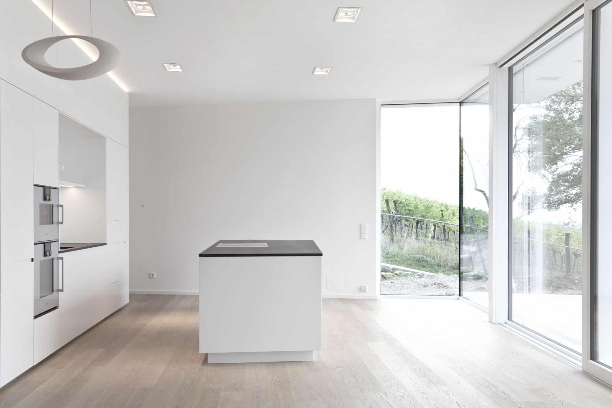 Bei diesem Projekt in Wien wurde von Innenarchitekt Georg Lehner bei der Gestaltung der Kochinsel die Form des Grundrisses aufgenommen. So fügt sich die offene Küche perfekt in die Architektur des Hauses ein, was eine optimale Nutzung des verfügbaren Raumes ermöglicht. Die Grundfarbe der Küche ist ein zeitloses Weiß, das ein Gefühl von Helligkeit und Eleganz vermittelt. Das minimalistische Interior Design unterstreicht die Exklusivität des Gesamtkonzepts. Die Küche ist mit exklusiven Gaggenau-Geräten ausgestattet, die höchsten Ansprüchen an Funktionalität und Design gerecht werden.